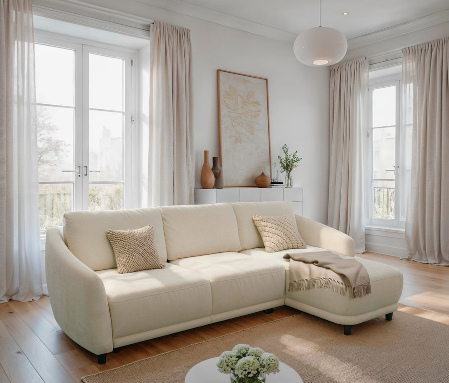 DOMO Ecksofa Longchair, rechtsbündig, creme