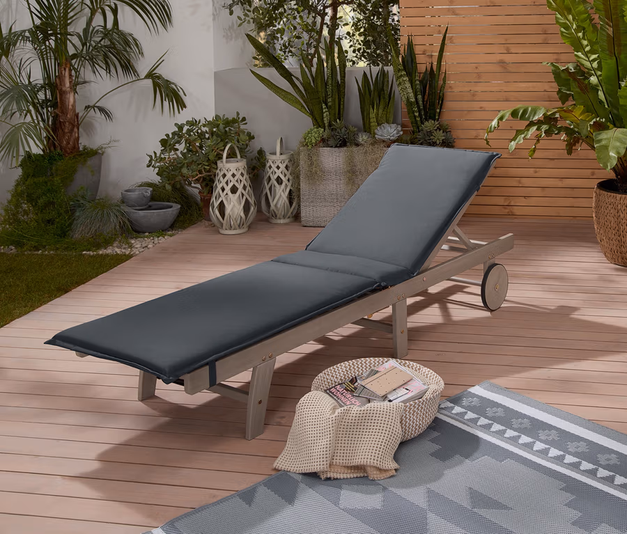 Auf dieser Gartenliege mit bequemer Auflage kann man im Sommer so richtig entspannen und das schöne Wetter genießen. Die verstellbare Rückenlehne sorgt für zusätzlichen Liegekomfort. Wer lieber in Bauchlage ein Buch liest oder sich die Sonne auf den Rücken scheinen lassen möchte, kann die Liege auch waagerecht einstellen. Gefertigt aus FSC®-zertifiziertem Akazienholz, passt sie mit ihrem Vintage-Stil in jede Gartenwelt. Die Rollen mit Gummiumrandung ermöglichen einen bequemen Transport – so findet man überall im Garten das richtige Plätzchen. Um den Untergrund der Terrasse muss man sich dank Bodenschonern auch keine Gedanken machen. Die Liege ist zwar wetterfest, für die Wintermonate kann man sie aber ganz einfach zusammenklappen und verstauen.