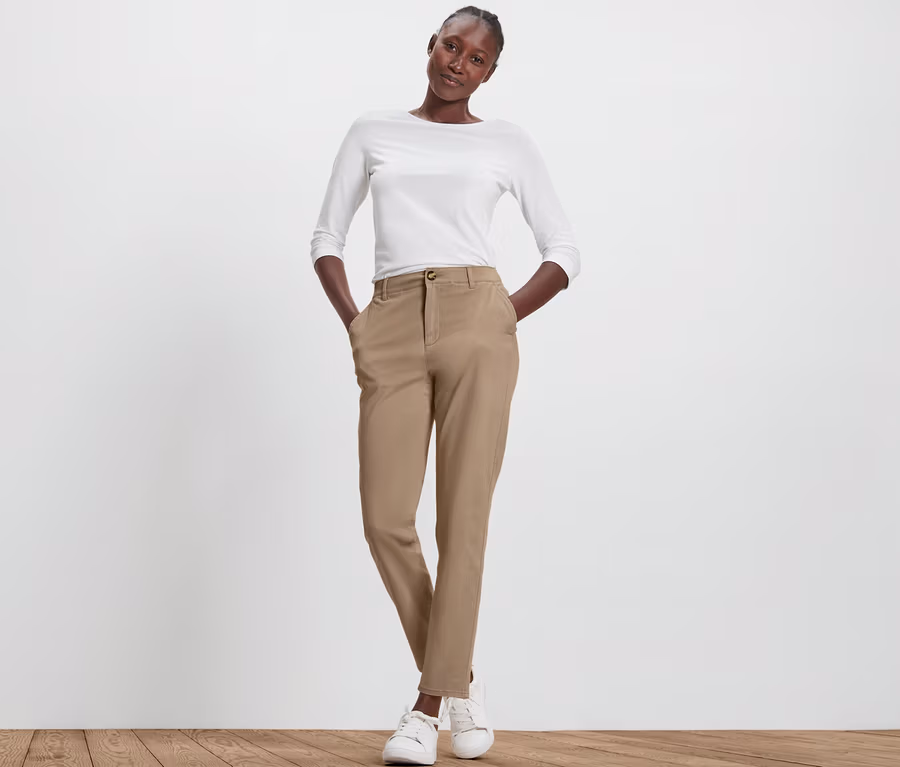 - Damenhose mit 2 Eingrifftaschen vorne und 2 Zier-Gesäßtaschen