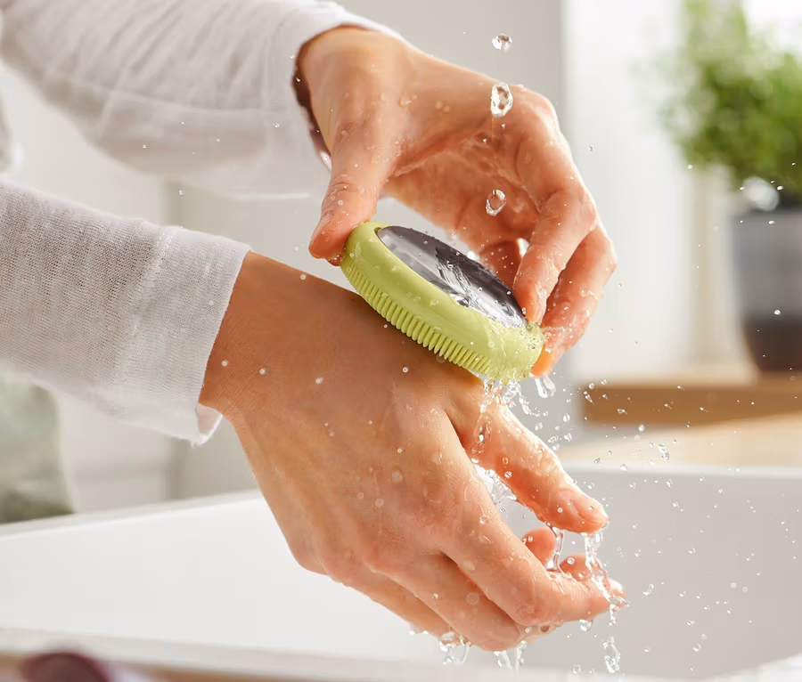 - Weiche Silikonborsten hinterlassen ein erfrischendes Gefühl auf den Händen