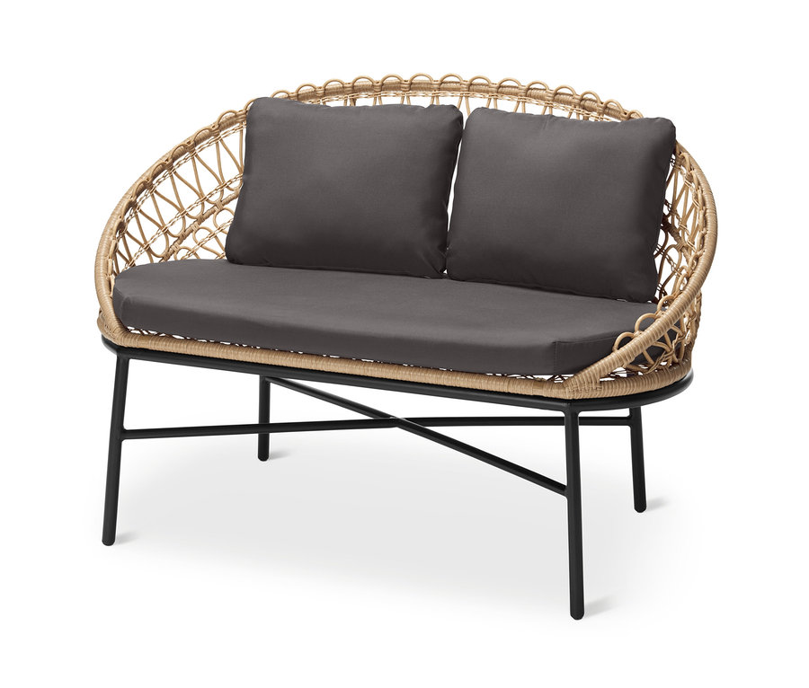 - Gestell aus Stahl, Rückenlehne und Seiten mit Polyrattangeflecht