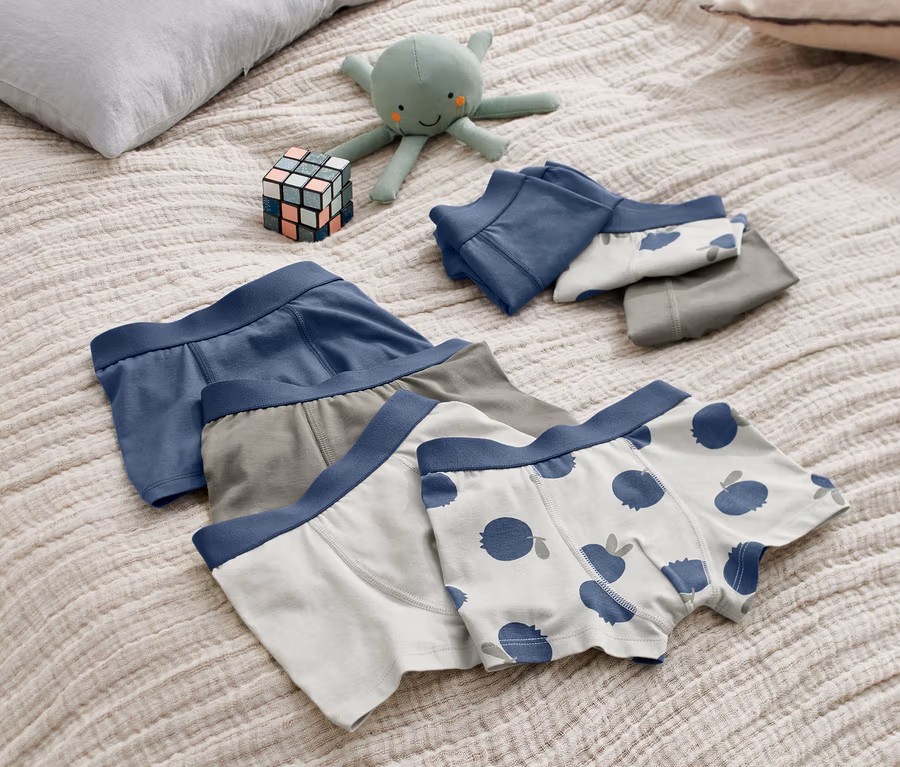 - 2x dunkelblau, 2x mintgrün mit Blaubeeren-Print, 2x olivgrün, 1x mint