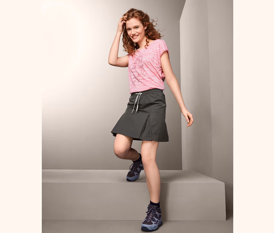 Insgesamt ist die Damen-Kombi leicht sowie strapazierfähig und der breite, elastische Bund sorgt bei allen Aktivitäten im Freien für einen optimalen Sitz. Der Rock hat hinten und an den Seiten Schlitze für mehr Bewegungsfreiheit und er ist mit einer Gesäßtasche versehen.
