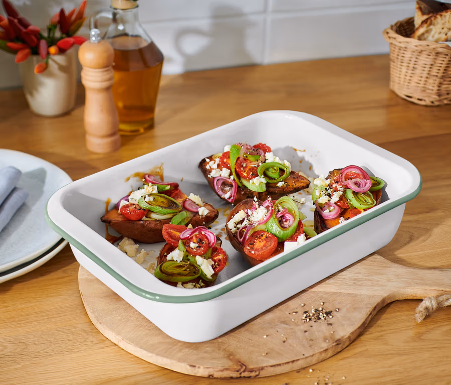 • Aus ofenfestem 3-fach emailliertem Metall – besonders korrosionsbeständig