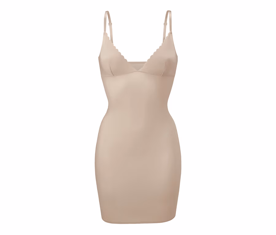 Die figurformende Wäsche bewirkt eine schlankere Silhouette, ist unter weißer und heller Oberbekleidung nicht sichtbar und kann dank der doppellagigen, blickdichten Cups auch ohne BH getragen werden. Das Unterkleid hat einen dekorativen V-Ausschnitt, längenverstellbare Träger und ist durch den Elasthananteil ausgesprochen formbeständig, ohne Abstriche beim Tragekomfort machen zu müssen.
