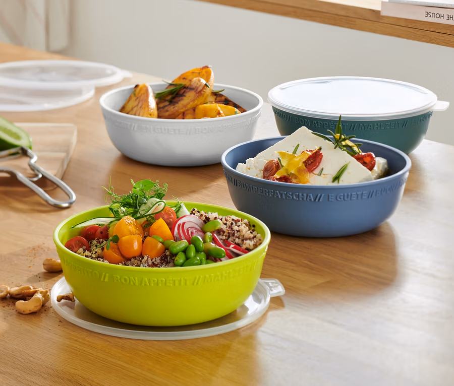 - Schüsseln platzsparend ineinander stapelbar