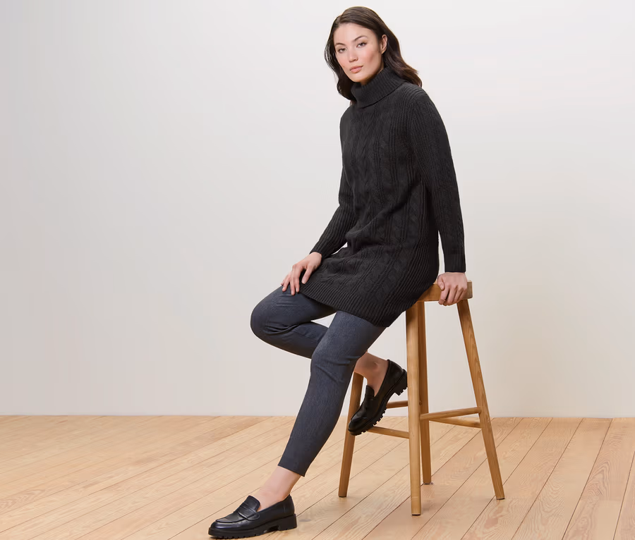 - Elastische Rippbündchen an Rollkragen, Ärmelabschluss und Saum