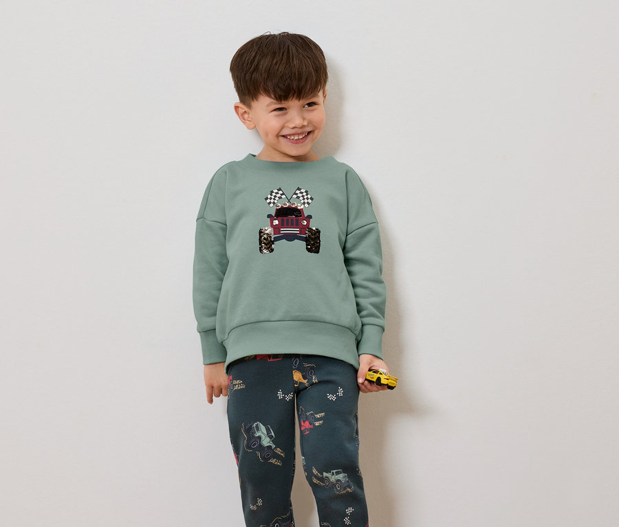 Kinder-Sweatshirt mit angerauter Innenseite, Truck-Applikation