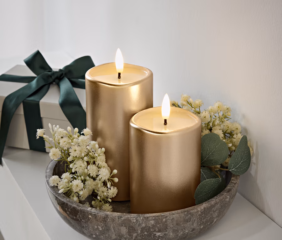 2 LED-Kerzen mit Echtwachsspiegel