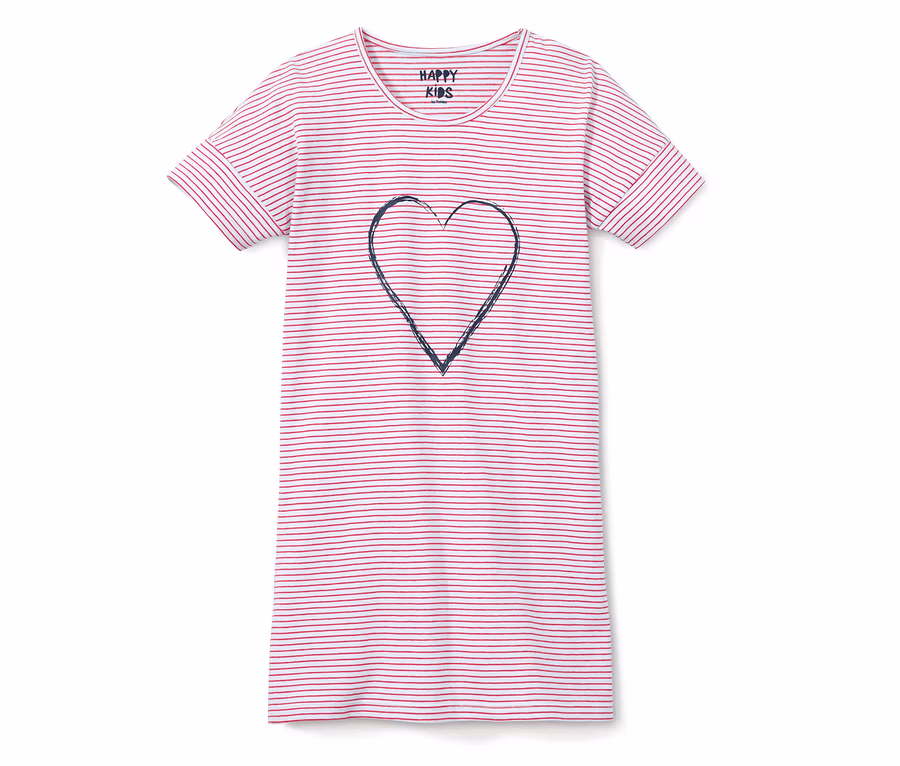 Gilt für Groß und Klein: Eine gute Nacht ist die Basis für einen guten Tag und damit die Kids einen erholsamen Schlaf finden, schafft dieses Nachthemd die besten Voraussetzungen. Es ist in weicher Single-Jersey-Qualität aus reiner, GOTS zertifizierter Baumwolle gefertigt und angenehm lässig geschnitten. Ein Herz-Print auf der Vorderseite der Kinderkleidung sorgt für einen Look zum Verlieben.
