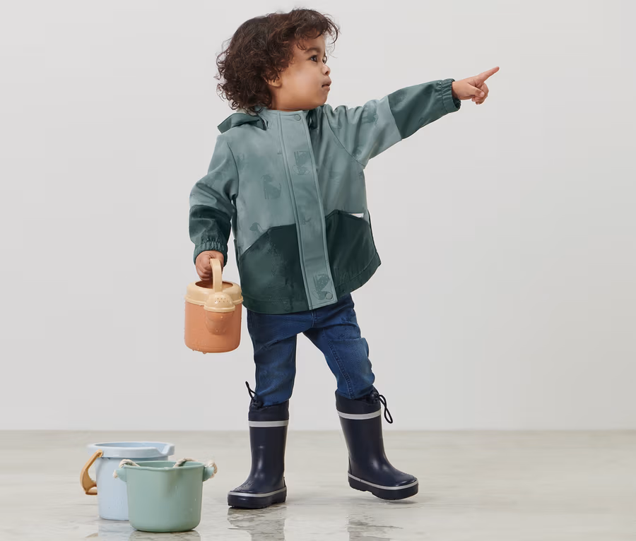 Kinder-Softshelljacke mit Farbwechsel bei Regen, grün
