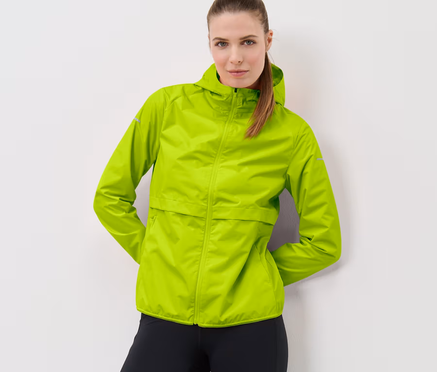 - Weitenverstellbare Kapuze mit hochschließendem Kragen