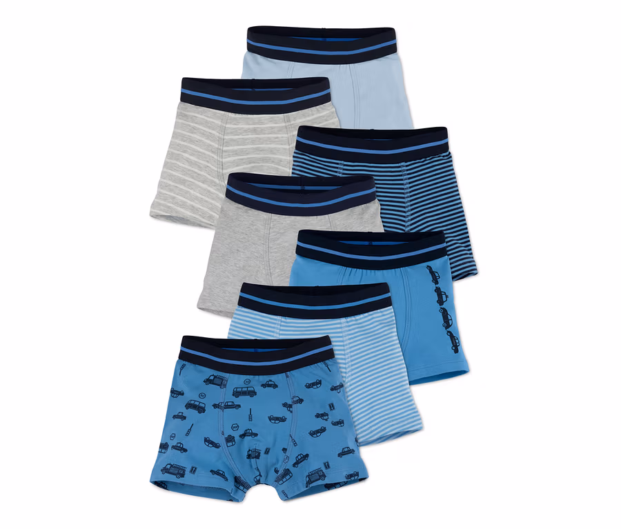 Mit diesen sieben Slipboxern in frischen Farben und Dessins sind die Kleinen jeden Tag in der Woche bestens unterwegs. Die Slips sind in weicher Single-Jersey-Qualität mit einem hohen Anteil an Bio-Baumwolle gefertigt und sitzen ohne störende Seitennähte besonders angenehm auf der Haut.