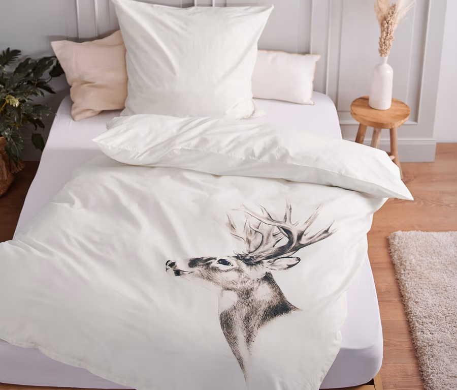 - 1 Seite crémeweiß mit Hirsch-Print, 1 Seite crémeweiß