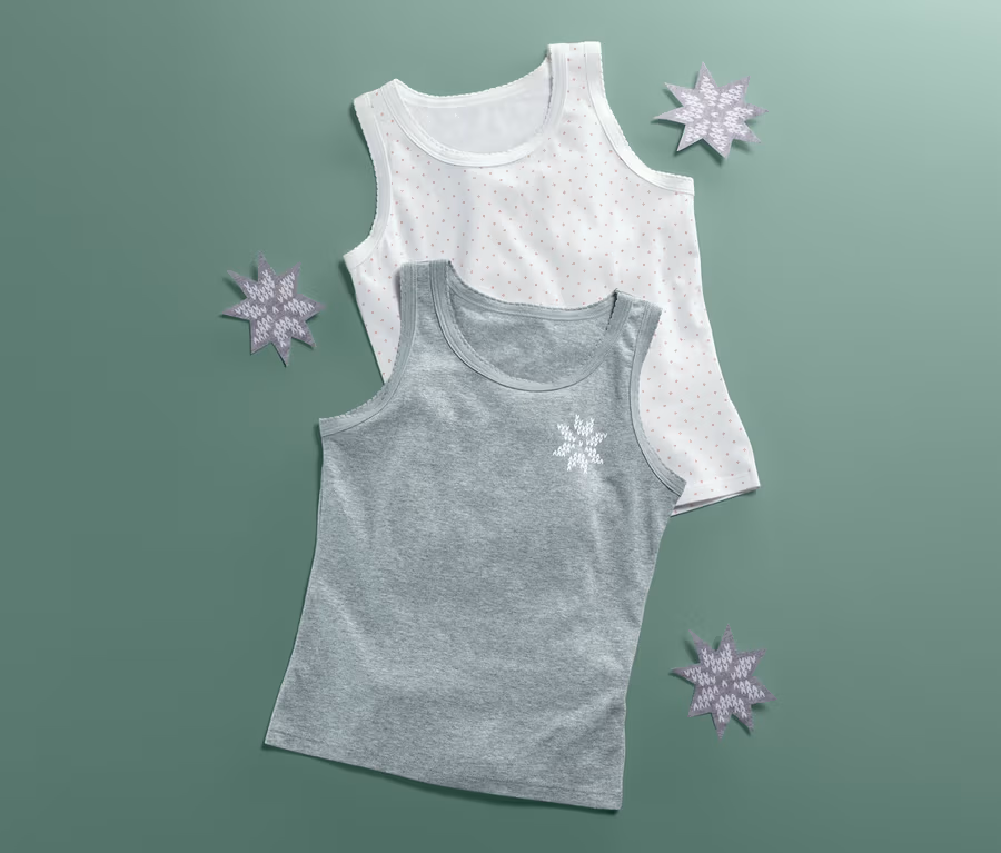 - 1x weiß mit rotem Schneeflocken-Alloverprint, 1x grau meliert mit weißem Schneeflocken-Print