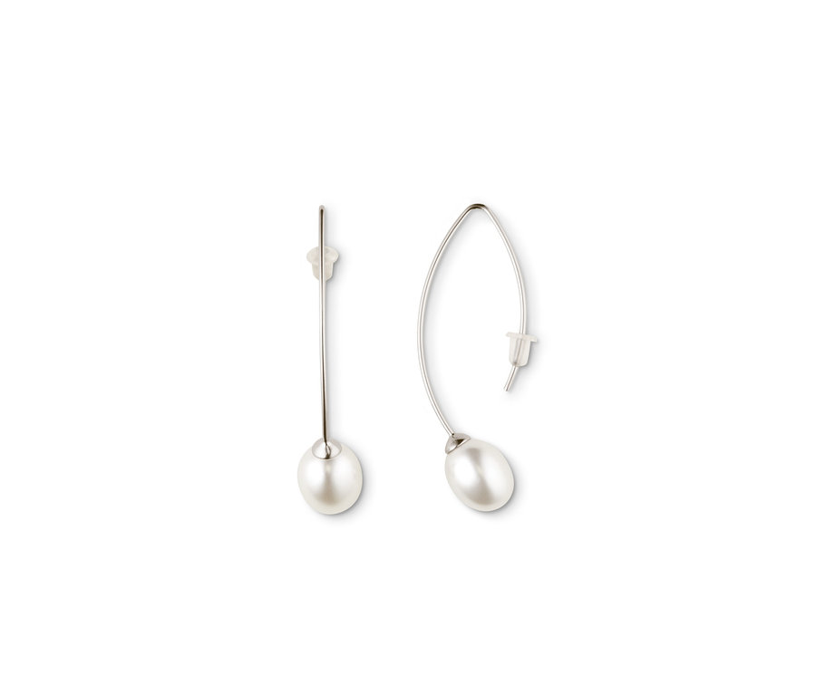 Perlen und Silber – die klassische Kombination setzt auch in dieser modernen Variante einen eleganten Akzent bei jedem Styling. Die Ohrhänger haben Haken aus Sterling-Silber und sind mit je einer Muschelkernperle besetzt.