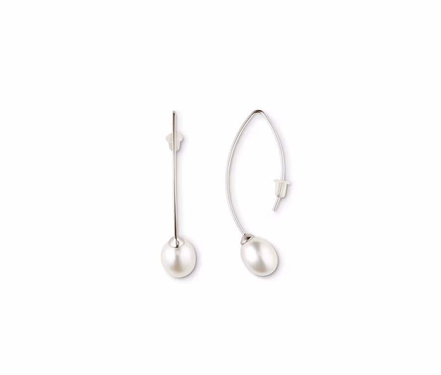 Perlen und Silber – die klassische Kombination setzt auch in dieser modernen Variante einen eleganten Akzent bei jedem Styling. Die Ohrhänger haben Haken aus Sterling-Silber und sind mit je einer Muschelkernperle besetzt.