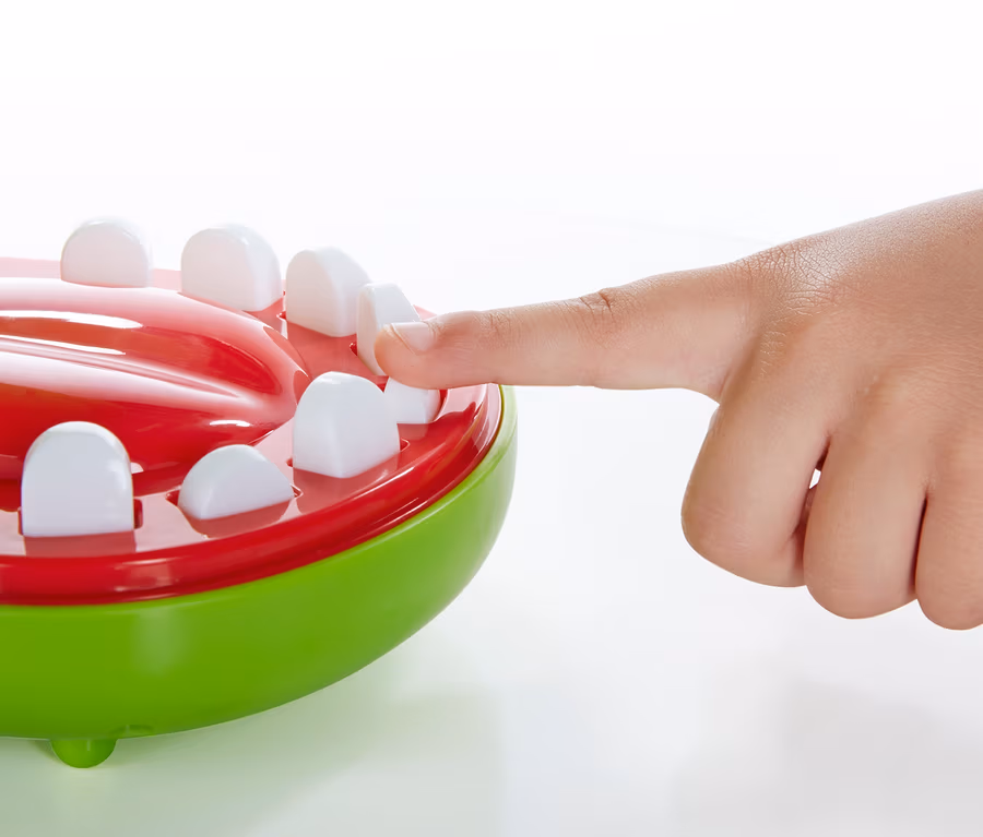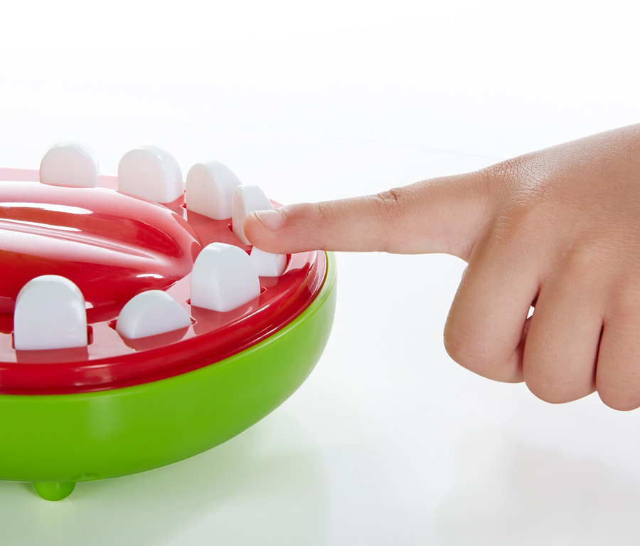 »Kroko Doc« ist supereinfach – macht aber immer wieder einen Riesenspaß und sorgt für Nervenkitzel: Bei dem lustigen Schnappspiel geht es darum, die Zähne des Krokodils runterzudrücken. Das wäre auch kinderleicht, wenn ein Zahn davon nicht krank wäre … Und wer den erwischt, braucht gute Reflexe, denn dann schnappt der Krokodilkopf blitzschnell zu. Passiert das, wird das Maul wieder geöffnet und das Spiel setzt sich zurück. Das Spiel ist für die ganze Familie geeignet, es ist für zwei bis vier Spieler gedacht und kann so lange dauern, wie man Lust hat: Wer am Ende am seltensten geschnappt wurde, gewinnt. Batterien werden nicht benötigt, der Spielmechanismus funktioniert mechanisch.