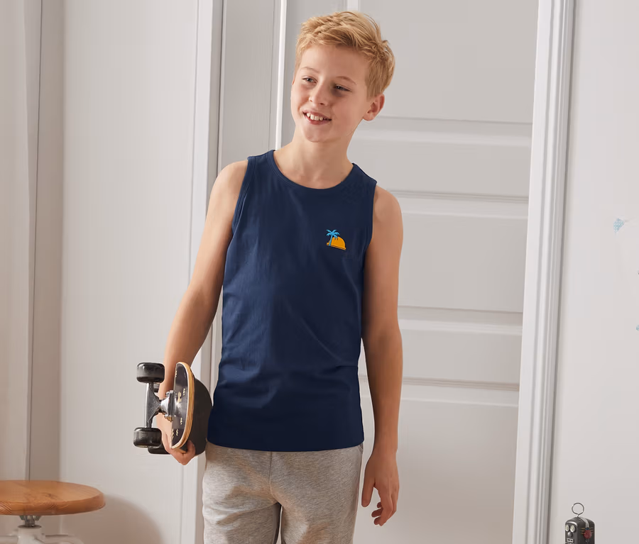 • Ärmellose Kindershirts für warme Sommertage