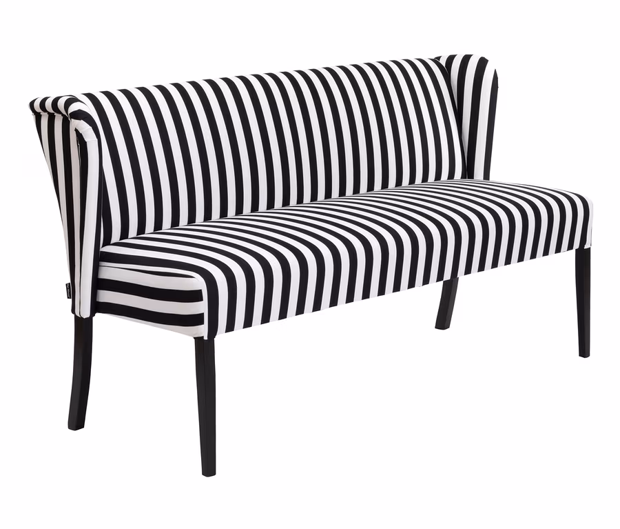 - Das markante schwarz-weiß gestreifte Flachgewebe verleiht dem Sofa den typischen Charme der 80s