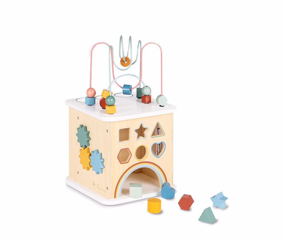 - Inkl. einem Motorikwürfel, 3 Kugeln, 6 Steckklötzen und Bedienungsanleitung
