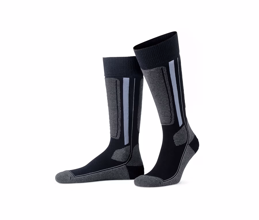 Leichter gesagt als getan. Gerade, wenn der Tag auf Skiern verbracht wird. Damit die Füße auch am nächsten Tag bereit für die Abfahrt sind, sollten die Socken richtig viel aushalten. So wie dieses Paar feuchtigkeits- und temperaturregulierender Skisocken, das die Füße schön warm und trocken hält.