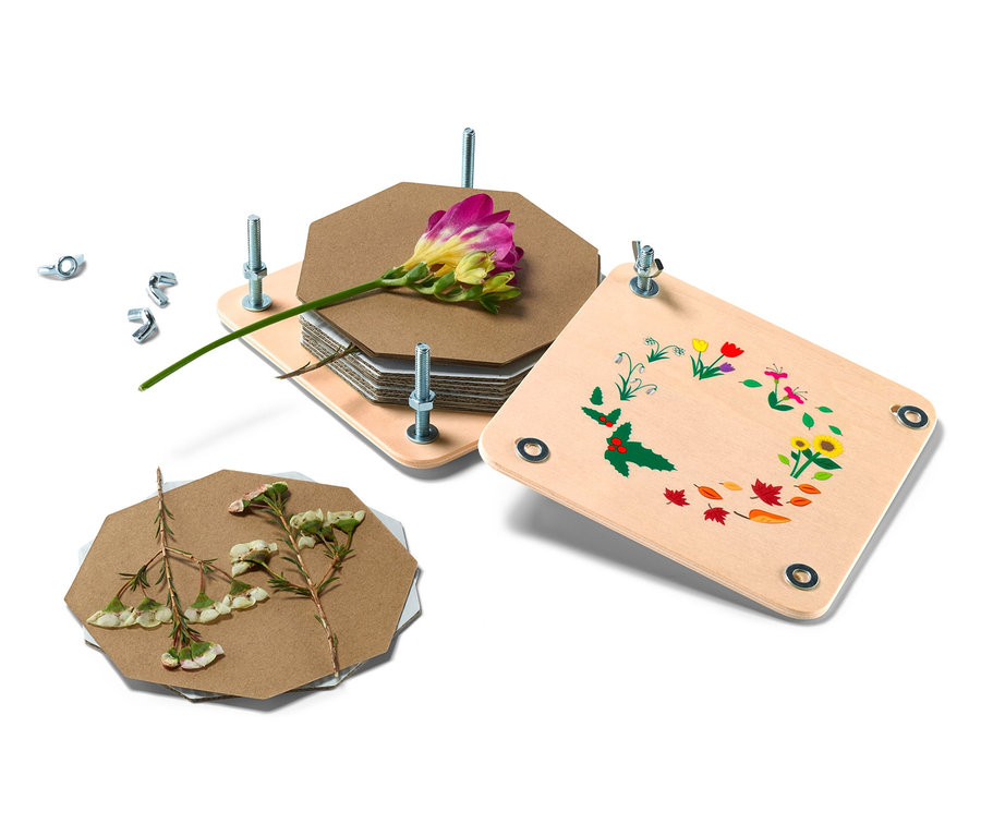 - Mit 8 Lagen Pappe und Saugpapier: Es können mehrere Pflanzen und Blätter gleichzeitig gepresst werden