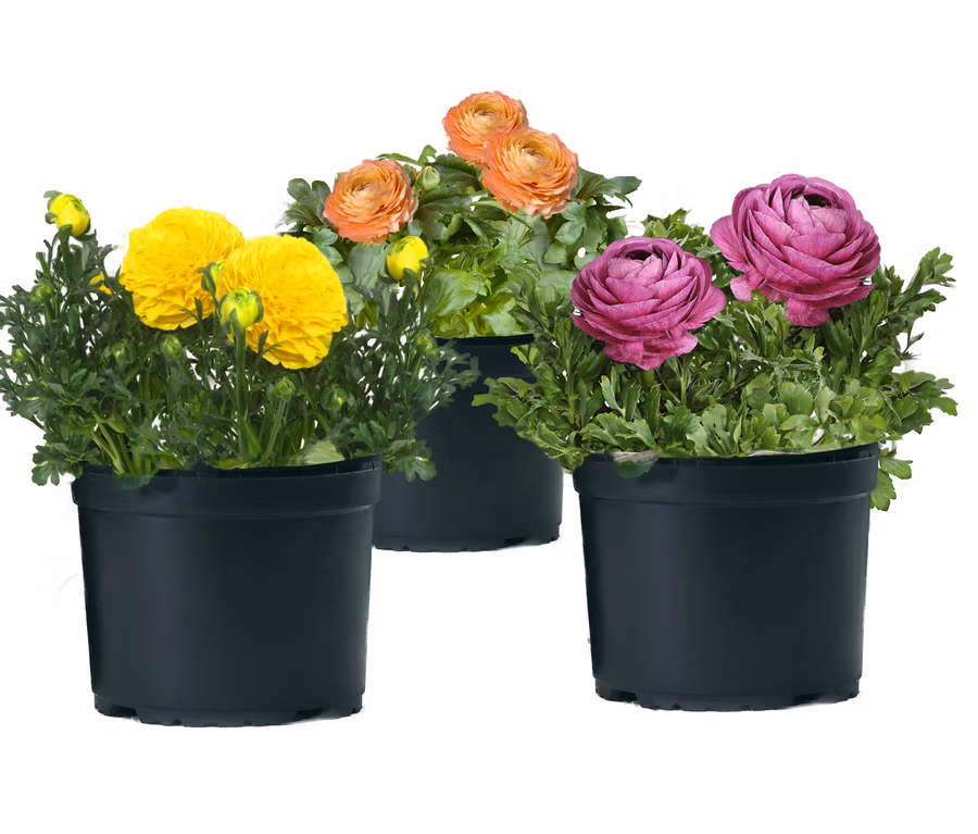 - 3 Töpfe, Durchmesser je ca. 17 cm, mit je 3 Ranunkel-Pflanzen