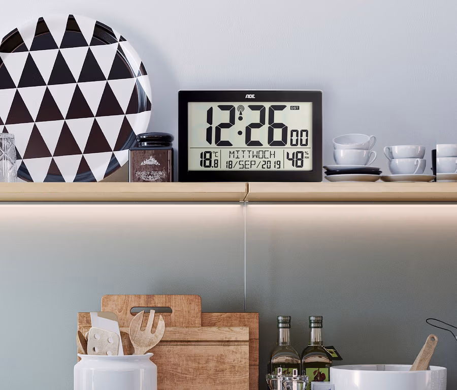 ADE XL-Funkwanduhr mit Thermometer und Hygrometer