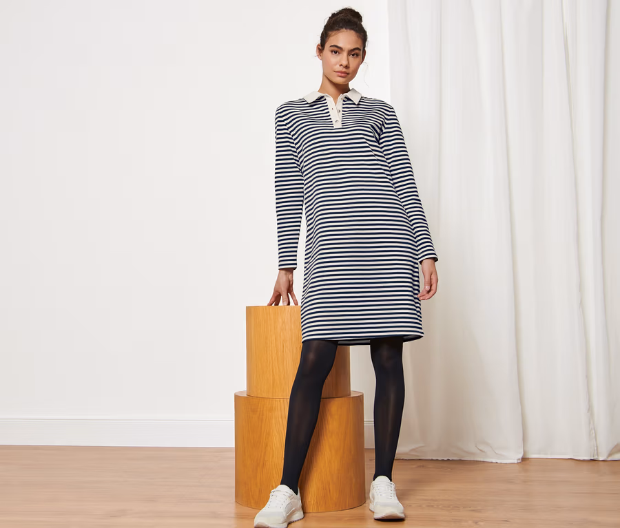 Gestreiftes Sweatkleid mit Polokragen