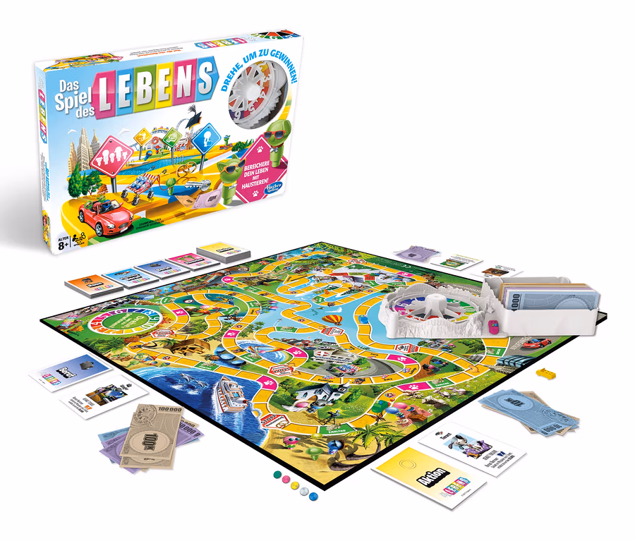 »Das Spiel des Lebens« kommt beim Spielenachmittag mit der Familie seit 1960 immer wieder auf den Tisch und hat seitdem nichts an seiner Faszination verloren. Wie sollte es auch? Schließlich geht es bei diesem Brettspiel um alles, was das Leben so ausmacht. Was das Spiel ausmacht, ist vor allem seine unaufgeregte Spielweise. Jeder Spieler trifft seine eigenen Entscheidungen, um seinen Weg zu gehen, eine Familie zu gründen und Karriere zu machen – und mit dem Drehen am Rad kommt der Zufall mit ins Spiel. In dieser Edition sind auch Haustiere mit von der Partie und wie immer zeigt sich am Ende des Spiels im Ruhestand, wer sein Leben am besten gemeistert hat. Das Gesellschaftsspiel ist für vier Personen ausgelegt.