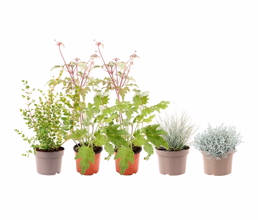 - Pflegeleichte und teilweise winterharte Pflanzenkombination – passt auf Balkon und Terrasse oder in den Garten