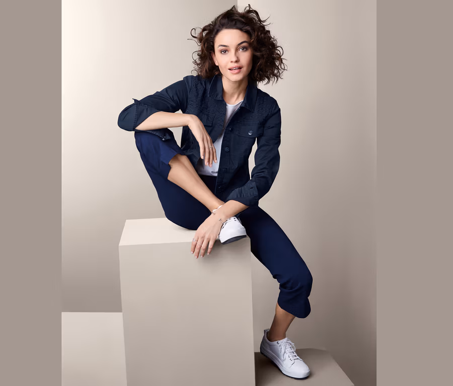 Auf der Vorderpasse der Cargo-Jacke befindet sich eine dekorative Lochstickerei und ihre figurschmeichelnde Nahtführung verleiht ihr einen schicken, femininen Touch. Zwei aufgesetzte Brusttaschen und zwei seitliche Eingrifftaschen bieten genügend Platz für Handy, Schlüssel und Co. Ihre Ärmelabschlüsse sind mit einem Knopfverschluss versehen.