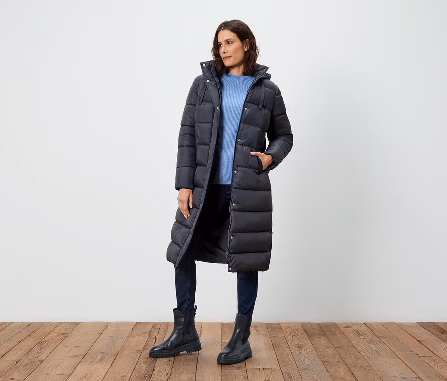 Steppmantel mit Kapuze, dunkelgrau