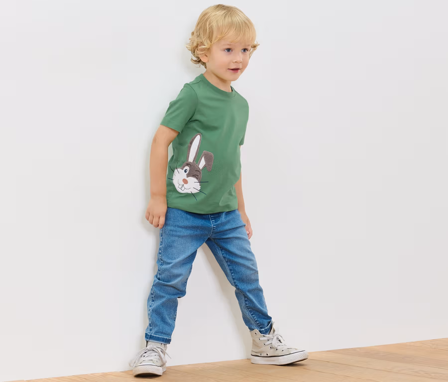 2 Kinder-T-Shirts mit Applikation, blau-grün