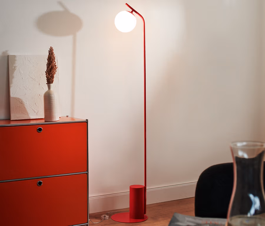 Stehleuchte mit Glaskugel, rot