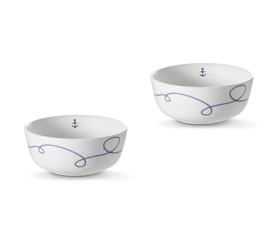 Perfekt für Müsli, Suppe oder andere Köstlichkeiten: Diese beiden Schalen aus Vitreous China sind durch ihre hochwertige Anmutung und die leichte Transparenz etwas Besonderes auf jedem gedeckten Tisch. Sie haben jeweils eine Füllmenge von etwa 500 Millilitern und sorgen mit ihrem Dekor für einen dekorativen, maritimen Akzent.