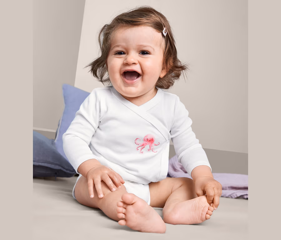 - Gr. 74/80 – 98/104 in Schlupfform: Druckknöpfe im Schritt für ein einfaches An- und Ausziehen