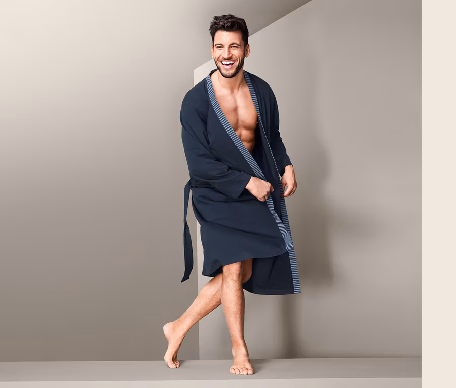 Wenn man den Sonntag ganz entspannt starten möchte, ist dieser Morgenmantel dafür perfekt geeignet. Er ist klassisch mit aufgesetzten Taschen sowie Bindegürtel gearbeitet und kann optisch mit seinem eleganten Schwung punkten. Der Morgenmantel ist aus reiner, GOTS zertifizierter Baumwolle gefertigt und liegt mit seiner Sweat-Qualität mit angerauter Innenseite angenehm weich auf der Haut.