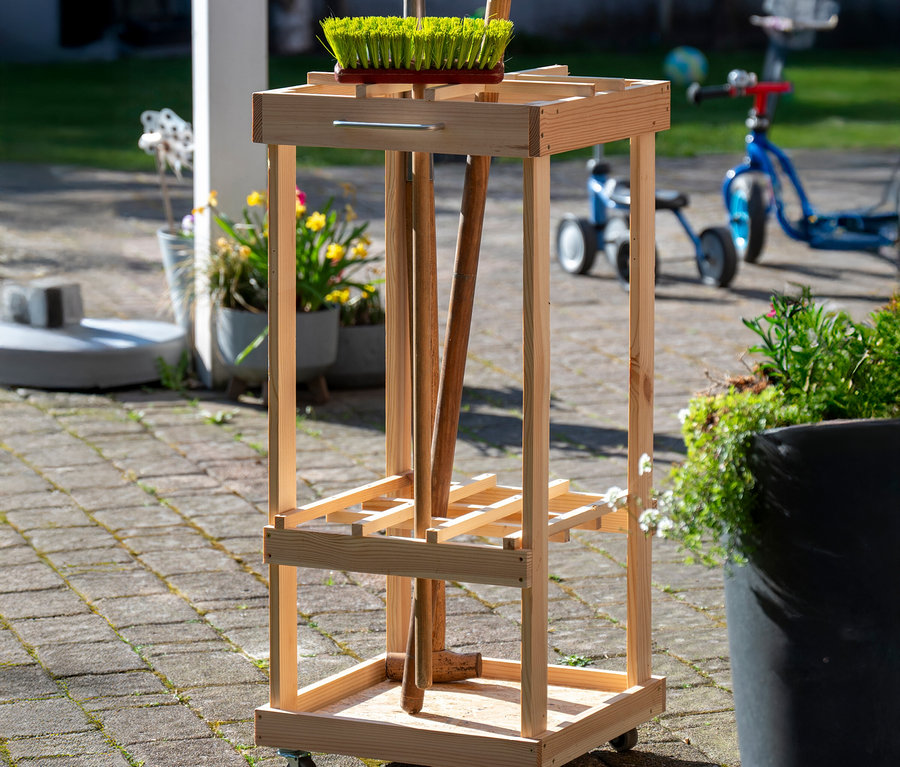 - Geordnetes Verstauen von Gartenutensilien