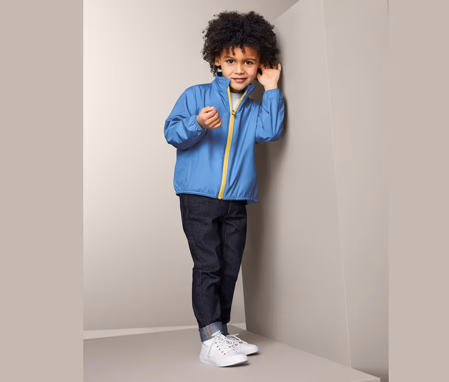- Funktionsjacke für Kinder – klein verstaubar in zusätzlicher Tasche