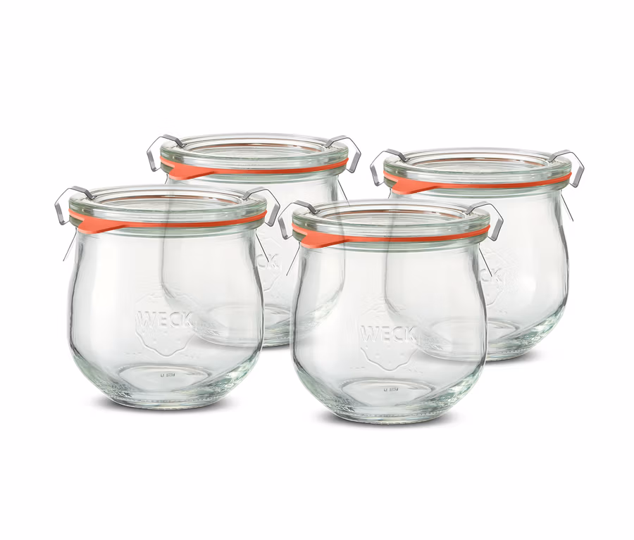 Um selbstgemachte Lebensmittel natürlich haltbar zu machen, sind die hier die erste Wahl, denn diese vier Weckgläser sind Klassiker, wenn es ums Einmachen geht. Außerdem eignen sie sich ideal zum Aufbewahren, Backen und Servieren.