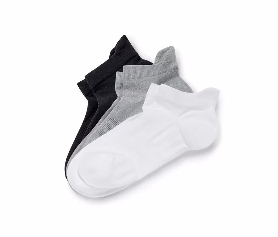 3 Paar Sportsocken, schwarz, grau, weiß