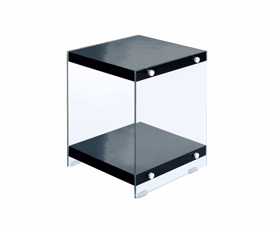 - Transparente Glas-Seitenwände und unifarbene Ablageflächen