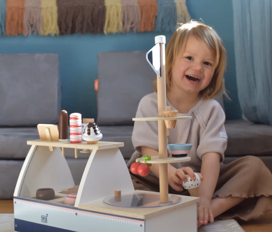 - Inkl. 1x Eistheke, 1x Eisportionierer, 4x Eiswaffeln, 2x Eisbecher, 2x Löffel, 1x Herzwaffel, 1x Kirsche, 1x Preisschild, 4x Eiskugeln, 1x Sahnehaube/Softeis, 3x Stieleis, 1x Aufbauanleitung