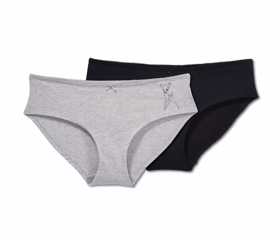 Über diese Pantys können sich Bambi-Fans doppelt freuen! Denn das kleine Rehkitz aus dem Hause Disney ist in diesem Set mit gleich zwei verschiedenen Motiven vertreten. Die Pantys sind aus Bio-Baumwolle gefertigt und dank weicher Single-Jersey-Qualität fühlt sie sich angenehm auf der Haut an. Elasthan sorgt für Formbeständigkeit sowie einen perfekten Sitz und der Baumwollzwickel für zusätzlichen Tragekomfort. Beide Pantys sind vorne mit einer kleinen Wäscheschleife aus Satin verziert und mit einer elastischen Zierkante versehen.
