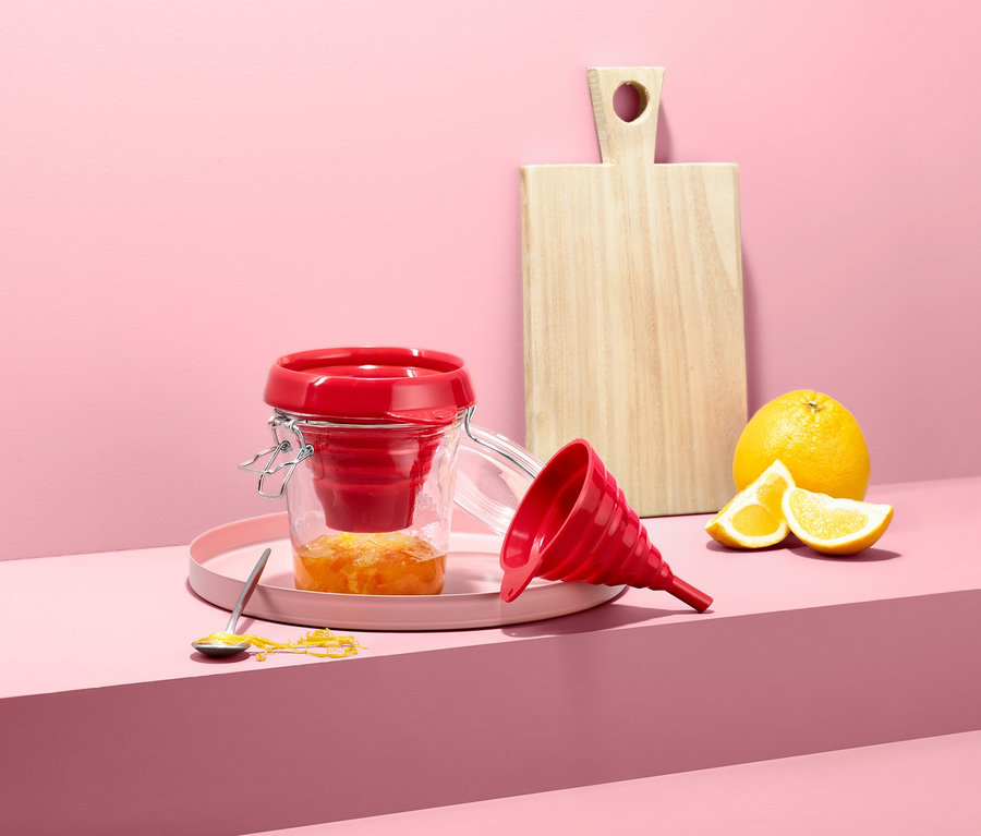 Eine Besonderheit von Trichtern ist, dass man sie in der Regel nicht jeden Tag benutzt. Genau deshalb sind diese beiden Silikon-Trichter eine echte Erleichterung für jeden Küchenschrank. Sie sind flexibel, faltbar und dadurch besonders platzsparend zu verstauen. Der breite Trichter ist ideal, um Marmeladengläser zu befüllen, für Flaschen und andere schmale Öffnungen ist das dünne Exemplar die optimale Lösung.