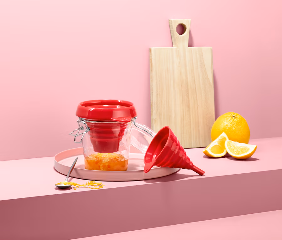 Eine Besonderheit von Trichtern ist, dass man sie in der Regel nicht jeden Tag benutzt. Genau deshalb sind diese beiden Silikon-Trichter eine echte Erleichterung für jeden Küchenschrank. Sie sind flexibel, faltbar und dadurch besonders platzsparend zu verstauen. Der breite Trichter ist ideal, um Marmeladengläser zu befüllen, für Flaschen und andere schmale Öffnungen ist das dünne Exemplar die optimale Lösung.