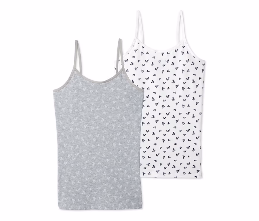 Diese Mädchen-Unterhemden eignen sich perfekt um solo als Top oder als Unterhemd getragen zu werden. Dank des hohen Baumwollanteils ist die Unterwäsche sehr hautsympathisch und anschmiegsam. Elasthan sorgt für Formbeständigkeit und den perfekten Sitz sowie einen hohen Tragekomfort. Das Design ist sehr niedlich und hat zwei Farbausprägungen: einmal in Weiß mit einem blauen Herz-Alloverprint und einmal in Grau meliert mit weißem Herz-Alloverprint.