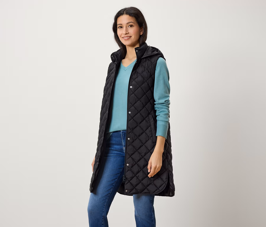 - Leicht abgerundeter Saum mit Seitenschlitzen
